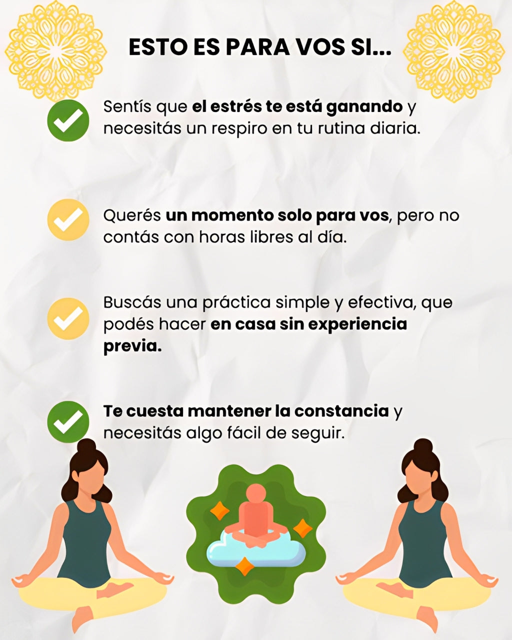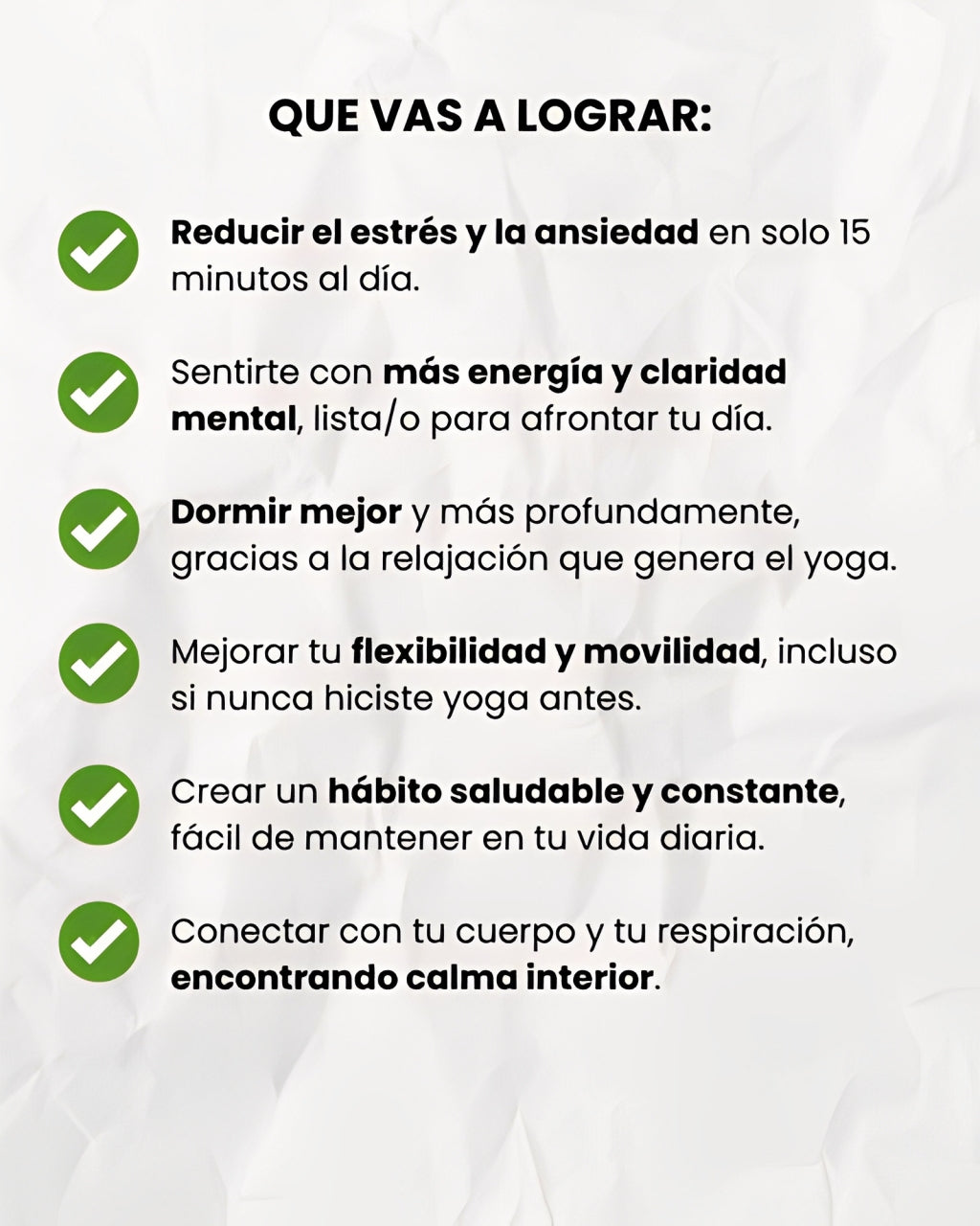 Solo 15 minutos al día. La rutina está pensada para adaptarse a agendas ocupadas sin sacrificar los beneficios del yoga.